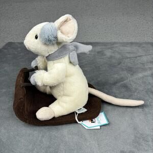 Jellycat Merry Mouse Sleighing Plush White Mouse On Sleigh 7” NWT
