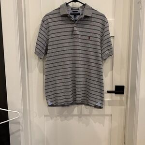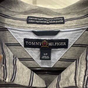 Vintage Tommy Hilfiger Gray and Navy Striped Polo Shirt