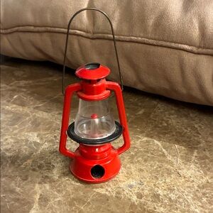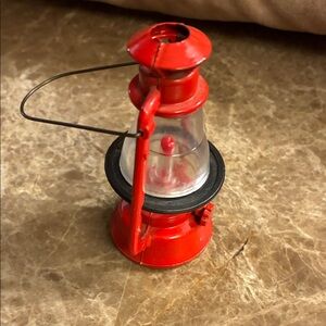 Charming red miniature lantern pencil sharpener with a classic design. Perfect for decor or collection.
