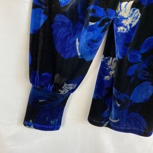 Chico's Women's Dark Floral Velvet Top in cobalt blue and black color.