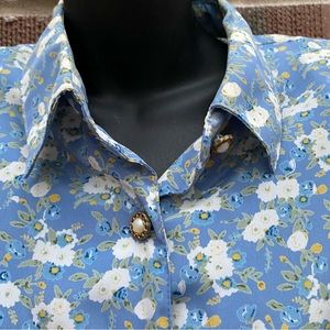 Breli Original 80’s pleated top buttons 3/4 sleeves Floral Secretary Dress Sz L