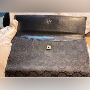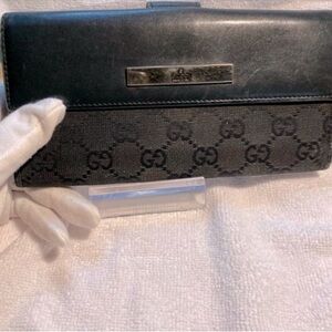 Gucci authentic vintage Long Canvas and Leather Wallet This wallet has lots of compliments for all your cards, cash, checks, and coins! This is a preowned item and will show some signs of wear.