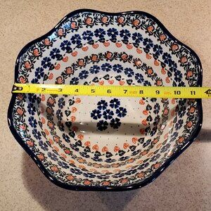 Vintage Ceramika Artstyczna Large Scalloped Serving Mixing Bowl Handpainted
