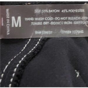 Traditional five pocket and belt loop design Front button and hidden zipper closure