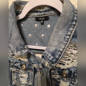 EUC Chloe crop denim distressed vest with button P2P 17 inches length 16 50 inches super cute and trendy very good quality vest