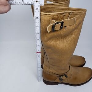 Frye Veronica Camel Leather Buckle Boots