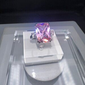 Pink Cubic Zirconia Emerald Cut Silver Ring Size 8