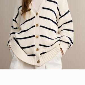 Chic navy striped chloe cardigan. Features button-down front. Ideal for layering, coastal cool, California chic, vguc, size xs but oversized. 100% cotton, some stitching has come undone on the cuff - haven't tried to fix.