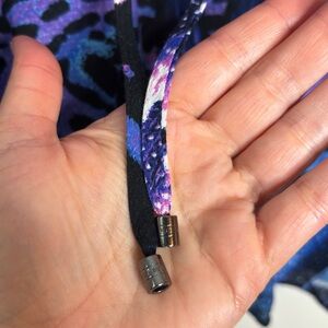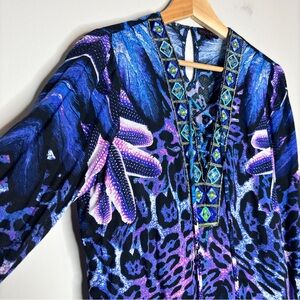 Hale Bob Blue Purple Animal Print Beaded Lace Up V-Neck Wide Sleeve Tunic Top M