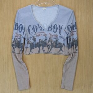 Urban Outfitters Crop Top Womens Large Cowboy Graphic Western Rodeo Y2K Festival