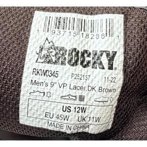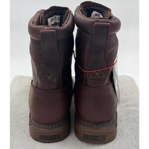 9" Rocky men's boots. Crafted from durable brown leather, these boots feature a sturdy rubber sole for excellent traction and long-lasting wear.