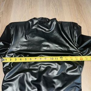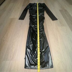 Black Faux Leather Mock Neck Long Sleeve Long Dress with Ruching & Slit - Large