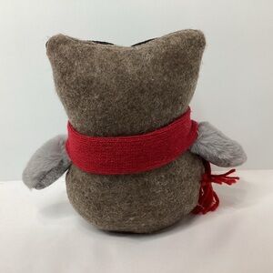 Christmas Stuffed Owl Plush Decor Holiday Gray Red Green 8" Plaid X-Mas Bird