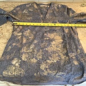 Chic blue tunic with elegant floral patterns. Ideal for versatile styling.