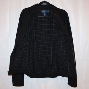 Polo Ralph Lauren elegant bi-swing jacket in Black with checkered lining. Features Polo Ralph Lauren branding. Ideal for versatile styling.
