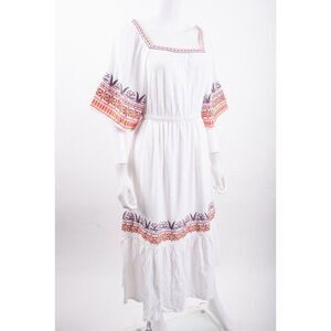 Boden Womens Jersey Embroidered Midi Dress UK 8 US 4 White Boho D0263 NWT