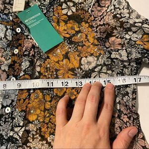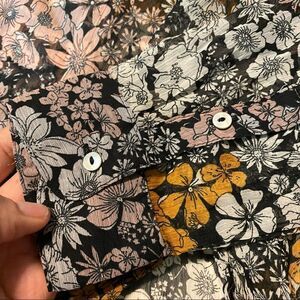 H&M Floral Sheer tunic Long Sleeve Blouse Peasant Mock High Neck button up -2