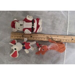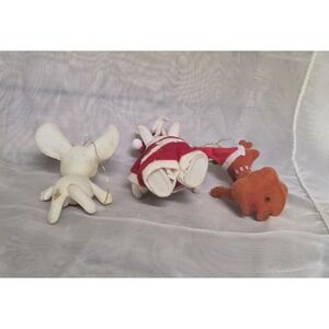 Vtg MCM Flocked Felt Christmas Ornaments Lot 3 Santa Bear Mouse Reindeer Holiday