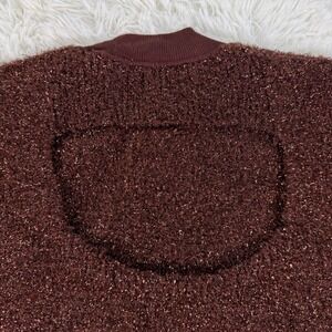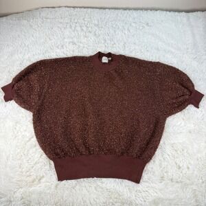 Maeve Violetta Brown Metallic Tinsel Knit Sweater Dolman Sleeve XL Festive Cozy