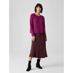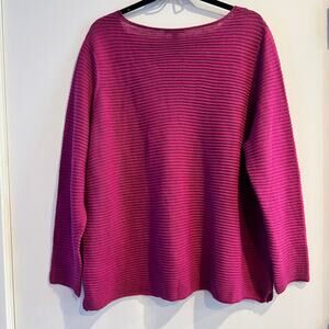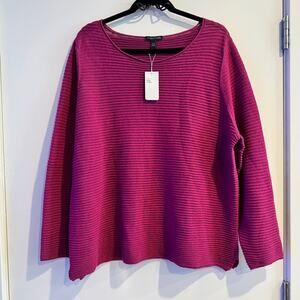 New Eileen Fisher Crew Neck Box-Top Purple Ribbed Knit Linen Long Sleeve Sz L