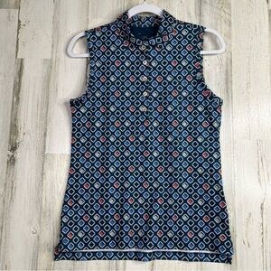 Peter Millar Shirt Womens Size Small Sleeveless Golf Polo Shirt Geometric Print