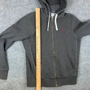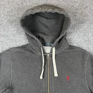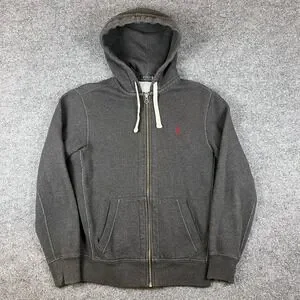 Polo Ralph Lauren Hoodie Mens M Gray Full Zip Heavyweight Double Knit Pony