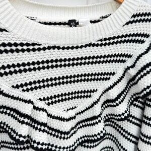 Size Medium, Cable Knit Striped Ruffle Sweater Crop – Black & White 2010 vibes