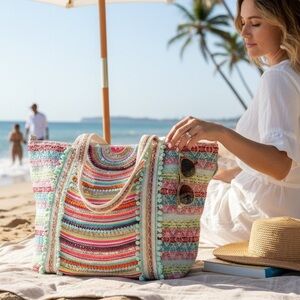 America & Beyond Boho Rainbow hand-beaded tote EUC
