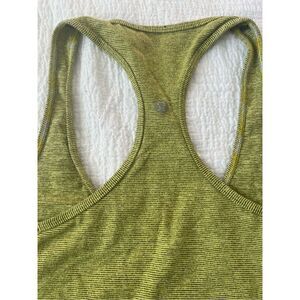 This Lululemon racer back tank is an excellent condition. Mini pinstripes add some dimension to the shirt. No size tag included but fits like a 4 to 6.