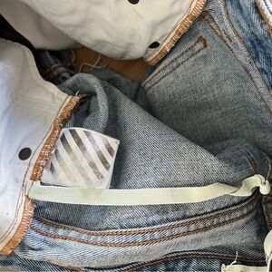OFF-WHITE Main Label Blue Denim Shorts sz 28 Rose Stripe Virgil Abloh