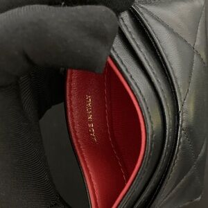 CHANEL Quilted Black Card Holder with Gold Emblem