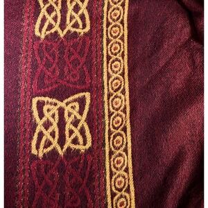 Made In France Wrap/Shawl Acrylic Burgundy/Tan Black Tassels Celtic One Size
