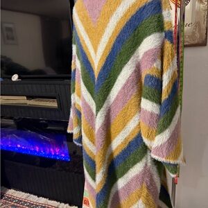 Elevate your wardrobe with this vibrant striped open front cardigan. Featuring a blend of pink, green, and yellow, it's perfect for adding a pop of color to any outfit.ptp 22+ stretch length 37. Oversized