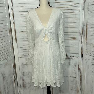 FTF Front Twist Lace White Mini Dress Size 1X 14/16 NWT