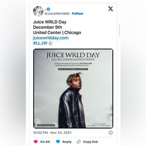 RARE Juice WRLD Day Slime Hoodie Rap 999 Club Dec 9 2021 Chicago United Center M