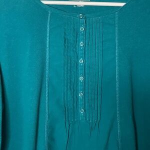 L.L. Bean long-. sleeve pintuck shirt, Teal Button-Front Size Large