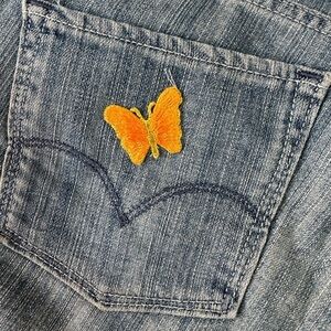 These were bootcut jeans that are cutoff