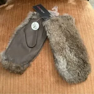 Echo Leather & Rabbit Fur Women’s Mittens L-XL Color Taupe Nude With Aloe NWT