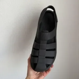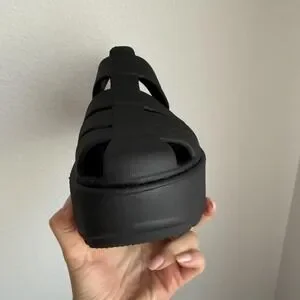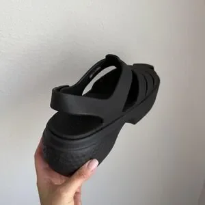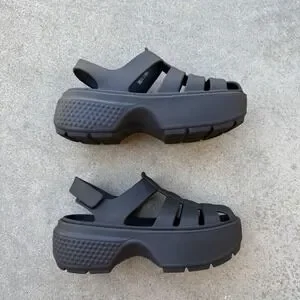 Chic dark gray sandals. Elevated platform design. Ideal for everyday comfort.