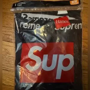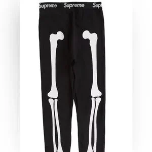 Supreme x Hanes Skeleton Design thermal black pants with white skeleton design. Iconic Supreme branding on waistband. Size M Brand New