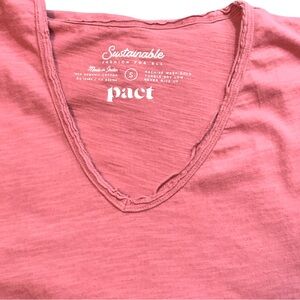 Pact Pink V-Neck small distressed T-Shirt dress sustainable organic cotton slit