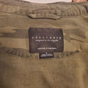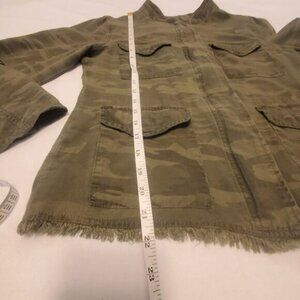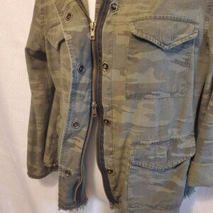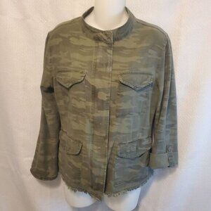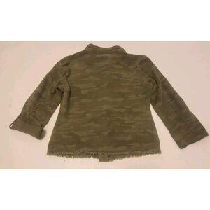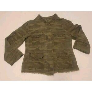 Elevate your wardrobe with this stylish Sanctuary women's jacket. Featuring a camouflage pattern and a relaxed fit, this jacket is perfect for any casual or workwear occasion. The jacket has a band collar and raw hem detailing for a unique touch.