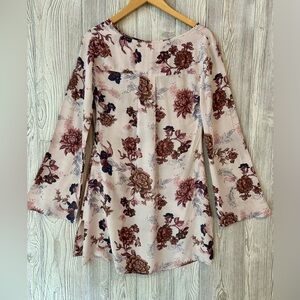 FREE PEOPLE HEARTBEAT Floral Printed Mini Dress Tunic Bell Sleeve Size Small