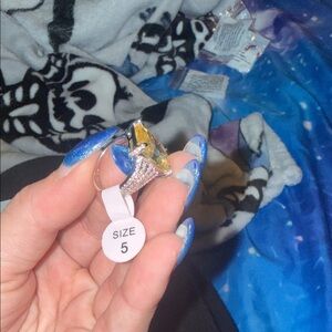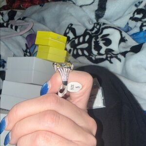 This elegant silver ring features a radiant yellow stone, perfect for adding a touch of sophistication to any outfit.