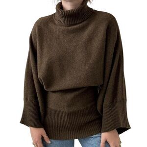 Vintage Y2K Womens Olive Green Lambswool Blend Bat Wing Minimalist Sweater Sz M