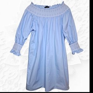 Zara 100% Cotton Off Shoulder Blue Mini Tunic Dress Size XS
