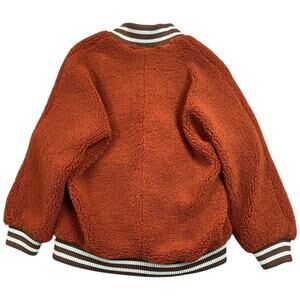 We The Free Sherpa Bomber Jacket Rust Brown Varsity Trim Size S