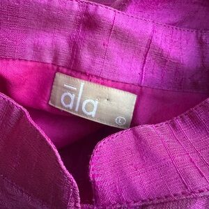Ala 100% Silk Button Down Blazer in excellent used condition. Measurements: bust 42”/arm length 21.25” cuffed/shoulder to shoulder 16”/length 27.5”