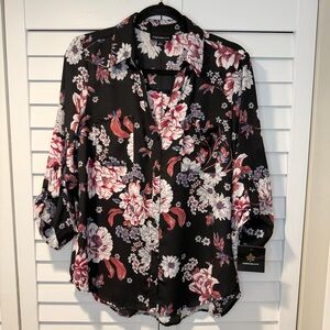 Business Casual Floral Button-Up Blouse Women's XL Lightweight Work Shirt New