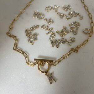 Alphabet Rhinestone Letters Toggle Gold Necklace